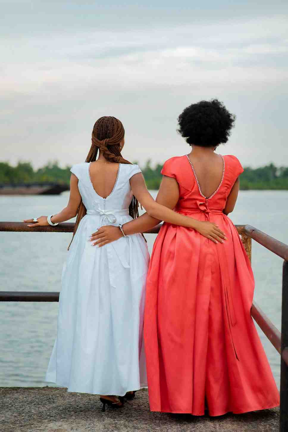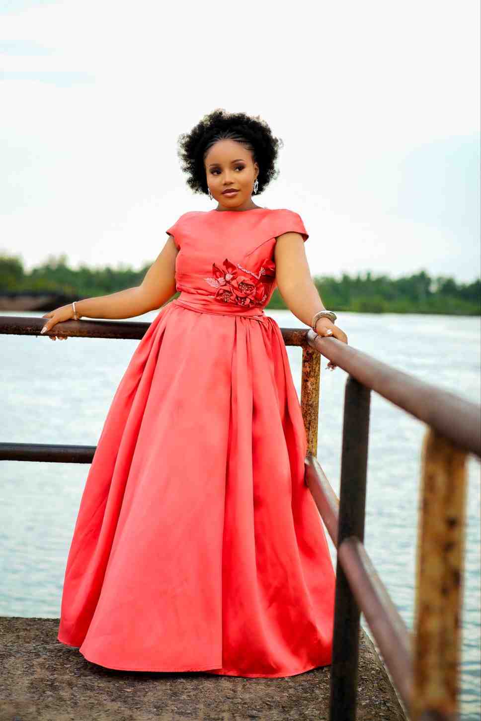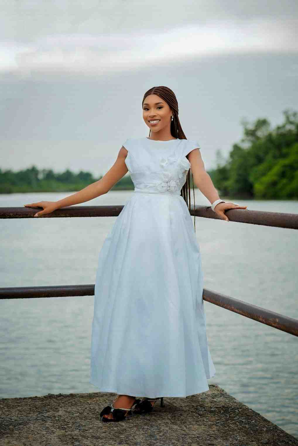 The rose dress is an elegant Mikado silk gown it features a gathered flare skirt, a dart designed bodice and subtle extended sleeves. The pleated niched waistline as adnored with handcrafted rose embellishment, intricately beaded for a refined touch. The dress is finished with a black tie rope and zip closure for secure fit.